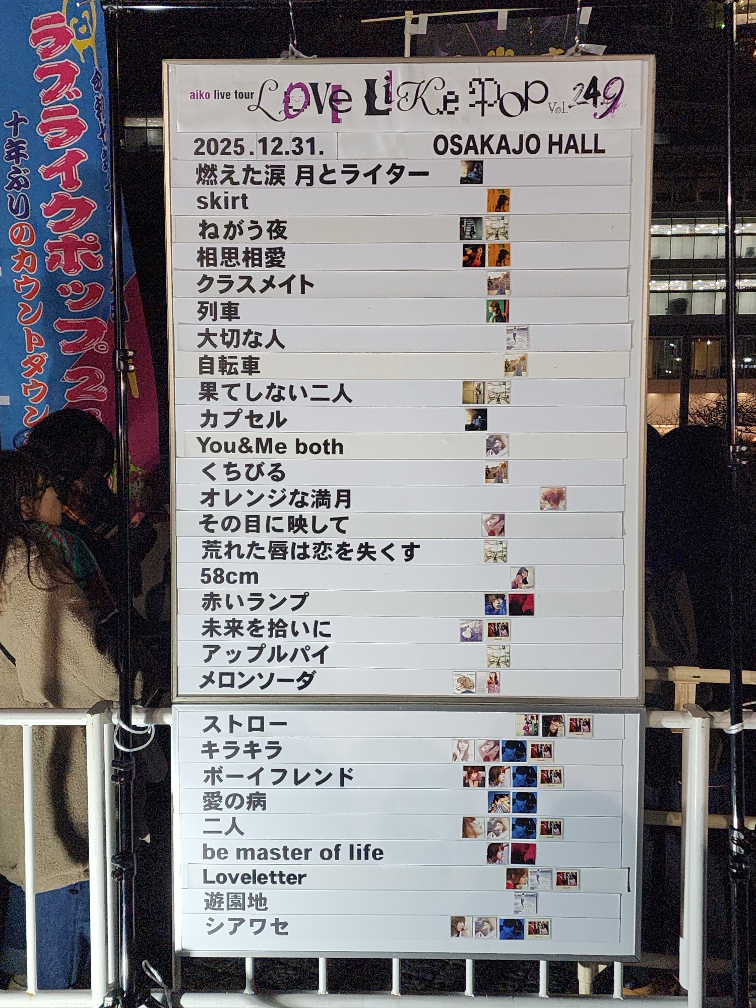 ダブルアンコール、即興などリストに載っていない曲もあります。