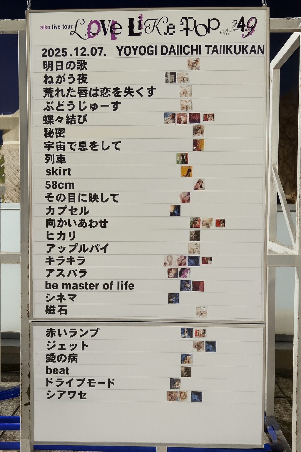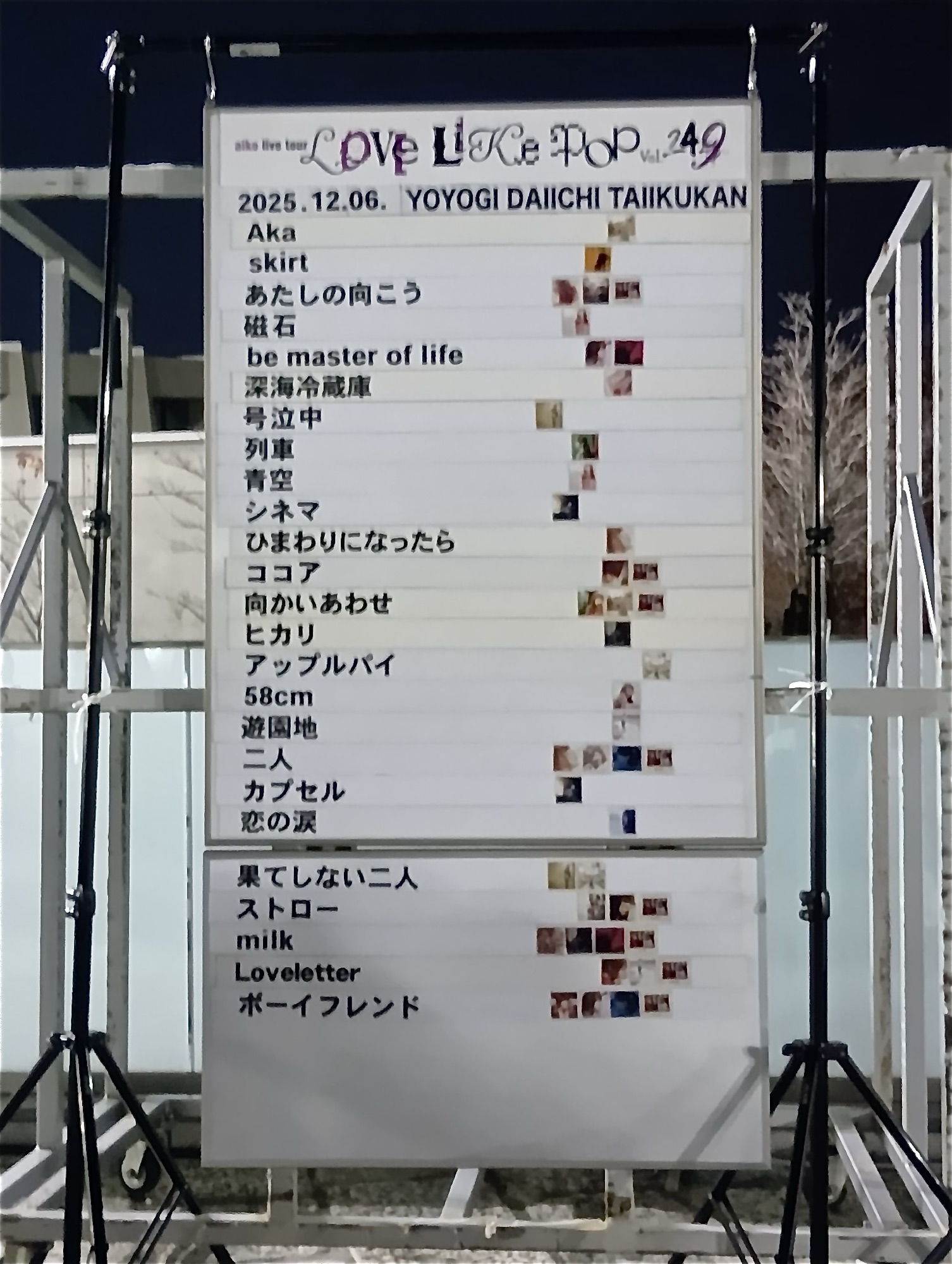 香川ではライブハウの前がパチンコ屋さんなのでセトリに赤い照明が映り込んでる。